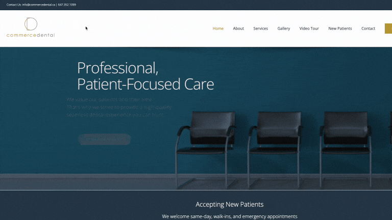 How Commerce Dental Turned Their Website into a Growth EngineCommerce Dental wanted a website that not only looked modern but also functioned as a true marketing asset. The site was slow to load, and didn’t effectively highlight the quality of their work. As a result, visitors weren’t sticking around, and potential leads were slipping away.To change this, we updated their website, focusing on both aesthetics and functionality. The revised site was designed to inspire trust, improve user experience, and ultimately convert visitors into new patients.Key improvements included:> Before-and-after galleries that showcased Commerce Dental’s impressive results, building confidence with prospective patients.> Professional video content that introduced the team, highlighted key services, and brought the practice’s personality to life.> Performance optimizations that improved load speed, enhanced SEO rankings, and ensured a seamless browsing experience.The Result:A modern, high-performing website that now acts as a powerful marketing tool for Commerce Dental. By combining strong visuals with strategic design, we helped them increase engagement, improve lead generation, and build stronger connections with prospective patients.